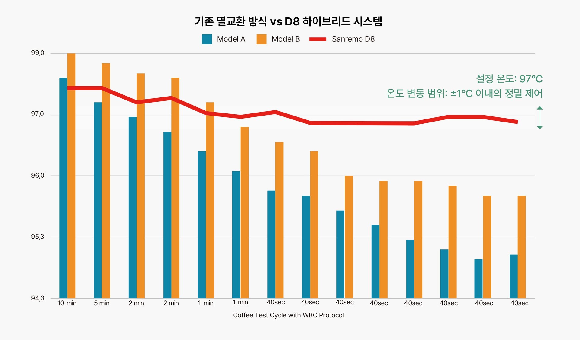 ✅ 97°C기준, D8의 압도적인 온도 안정성