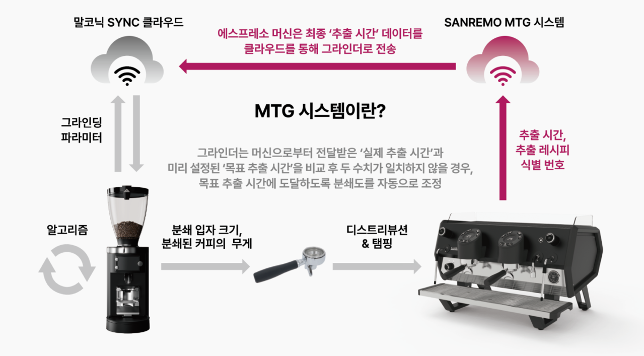 머신과 그라인더 간 연결은 카페 운영의 일관성과 효율성을 높이는 핵심 요소로 주목받고 있으며, 초기 세팅 시 커피 낭비를 줄이고 어려운 작업이라도 추출 세팅을 간편하게 해결해 줍니다. SANREMO는 다양한 브랜드와의 협업을 통해 매장 맞춤형 연결 솔루션을 제공합니다.